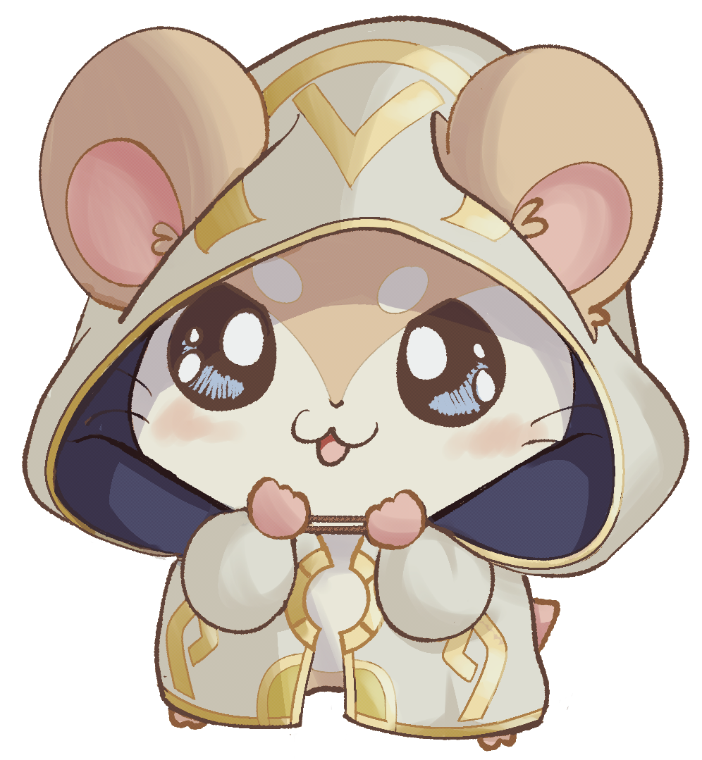 DISTINGUISHING FEATURES: is a hamster. has eyebrow markings on their face and butt markings on their rump. sometimes they'll wear their summoner robes as a formality, or for warmth.